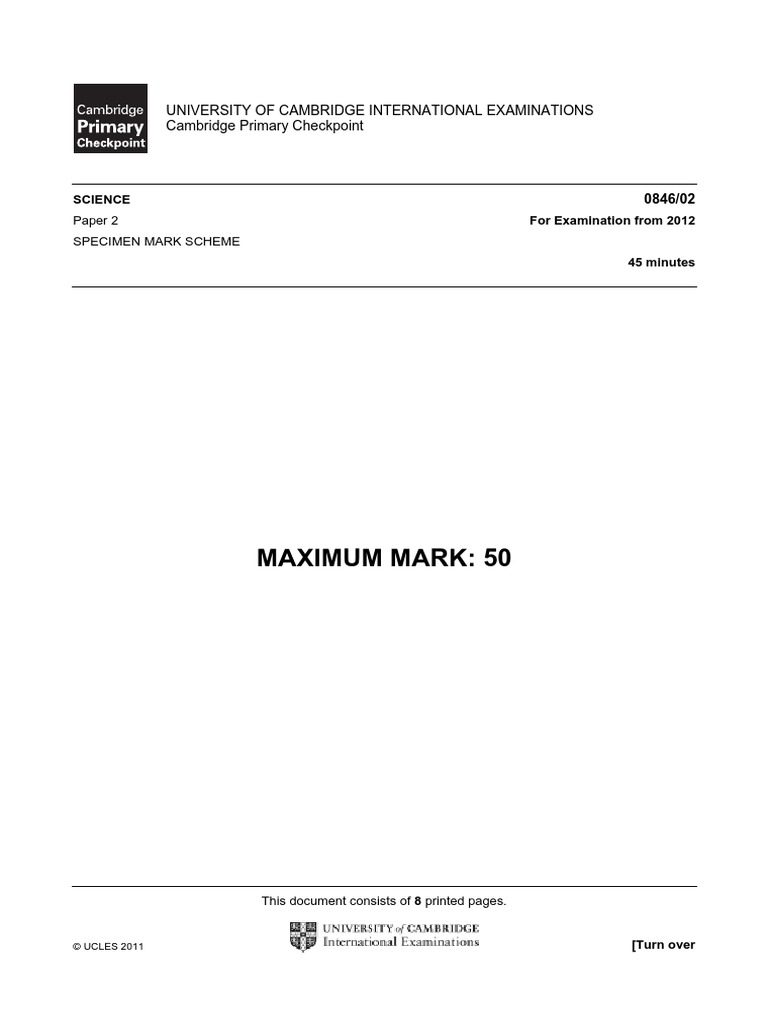 Cambridge Primary Checkpoint English P2 Specimen Mark Scheme 2012 Pdf University Of Cambridge International Examinations Cambridge Primary Course Hero